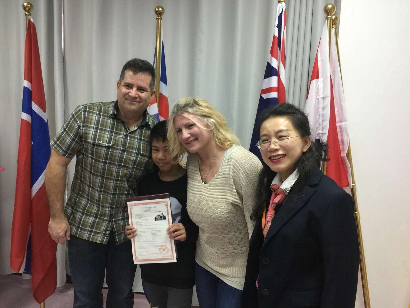 广西电视台对广西政务服务中心的涉外收养相关程序进行电视采访,了解浩德GX0118收养团6个家庭办理收养登记的状况。在得知浩德是国际收养领域的领袖机构,并长年与广西区民政厅保持着良好的工作交流后,记者采访了浩德副总裁陈跃建女士。陈跃建女士谈到了浩德的涉外收养工作,分享了我们如何为孩子为家庭服务,介绍了我们家庭收养的程序,高度赞扬了广西涉外登记工作人员的专业和亲民,为远道而来的收养家庭和福利机构提供了优质便捷的服务,更是为每一个孩子材料的准备做了大量的前期工作,帮助孤残儿童回归家庭起到了积极的作用。