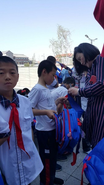为孩子们送书包、文具