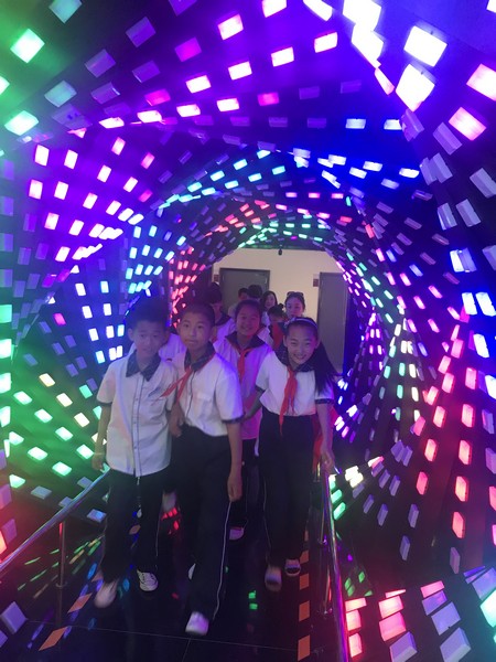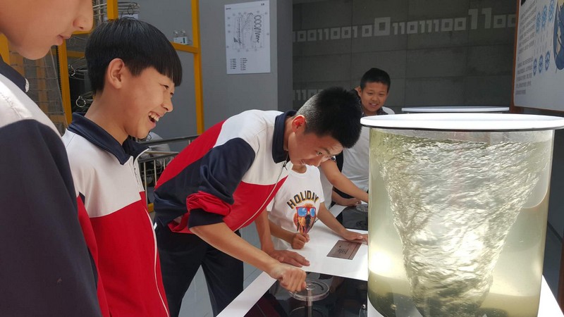在近两个小时的参观过程中,同学们亲身体验了科学的奥秘,欣喜和惊讶之声充溢着展厅的每一个角落,兴奋之情溢于言表。通过互动、参与、演示等方式,使同学们在参观体验的同时学习了历史文化、绿色生活、运动旋律、光学、力学、电磁学、声学等丰富的科学知识。有的同学还认真的做着记录。